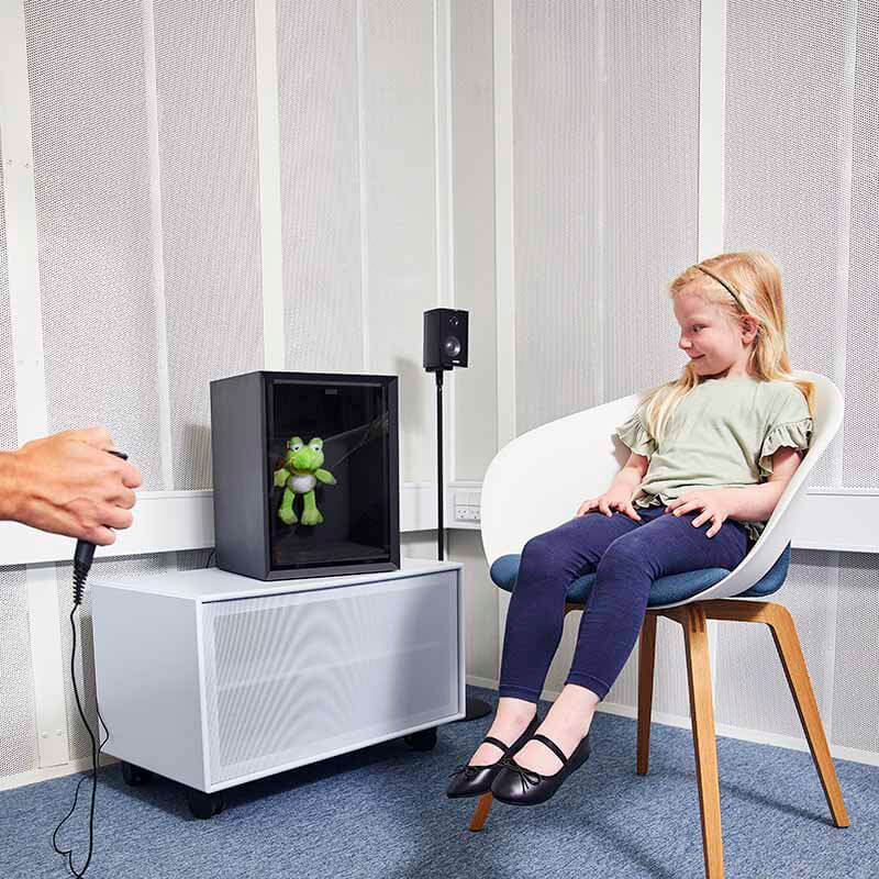 A VRA201 egyszerű, de hatékony. Csatlakoztassa a tápegységhez, helyezze el a szabadhangtérben, és máris használatra kész. A készülék egy animált játék, amely színezett plexiüveg mögött található. Ha a páciens kielégítő választ ad, nyomja meg a VRA201-hez mellékelt válaszkapcsolót, és a játék világít. Egyszerű, de hatékony mód a megbízhatóbb küszöbszintek megállapításához!